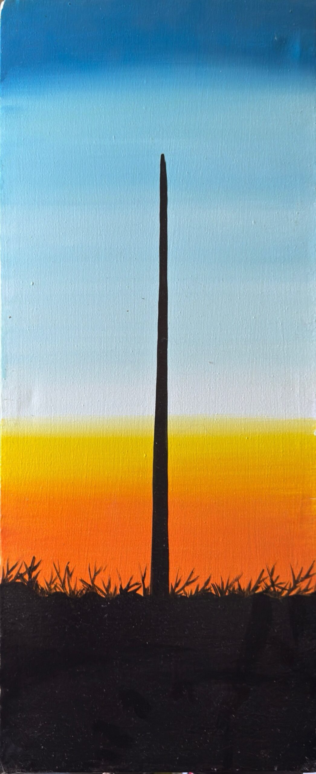 This handmade 40cm x 60cm acrylic painting captures the quiet elegance of an African sunset, where deep blue skies fade into warm orange and golden hues. A striking silhouette in the foreground adds depth and minimalistic charm, making it a perfect centerpiece for your home, office, or gallery.